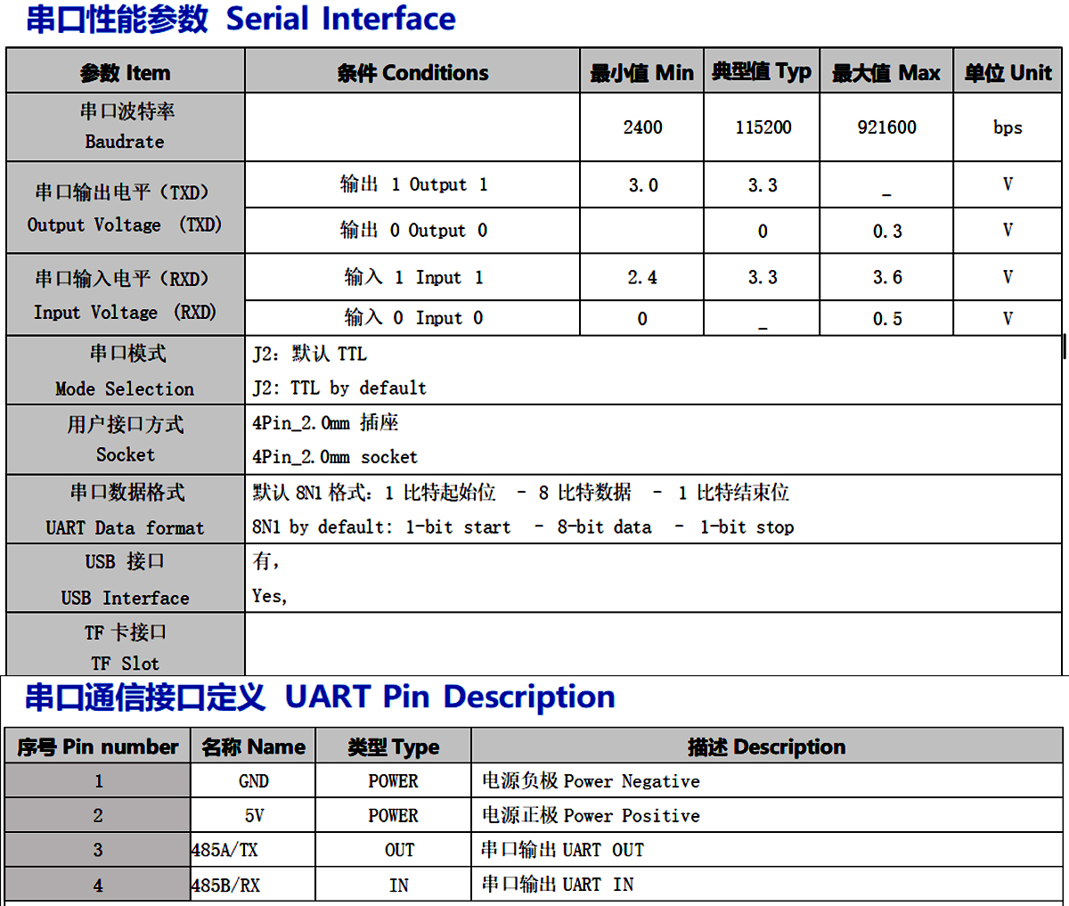 | 串口通訊方式 | Serial communication method | TTL (可定制RS485/RS232) | |